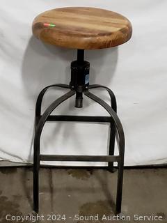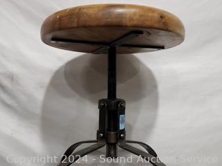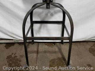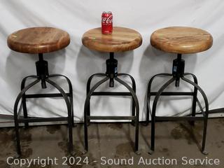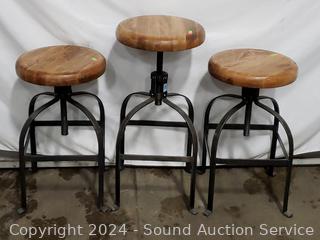 Lot #0050: 3 Wrought Iron Swivel Adjustable Wood Seat Stools