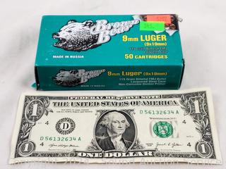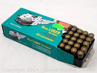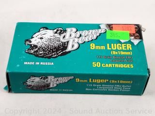 Lot #0345: 50ct Brown Bear 9x19mm Luger 115gr Bimetal FMJ Ammunition