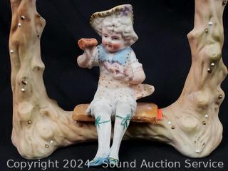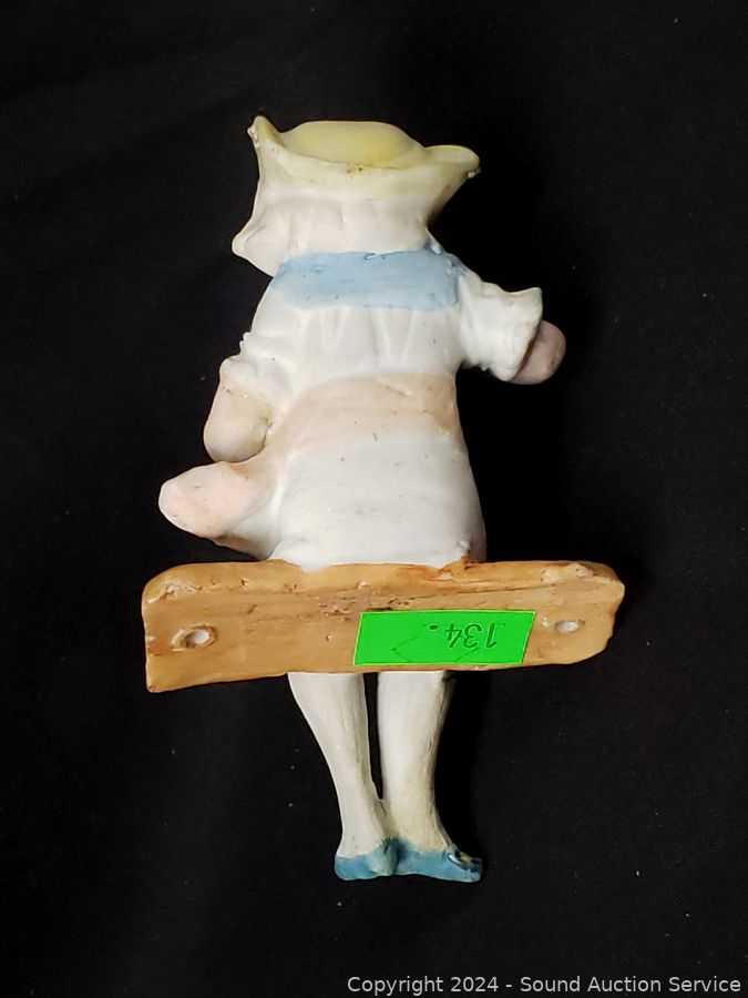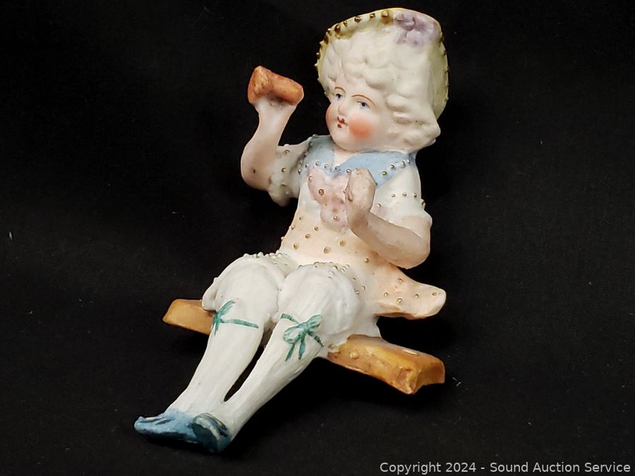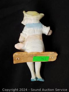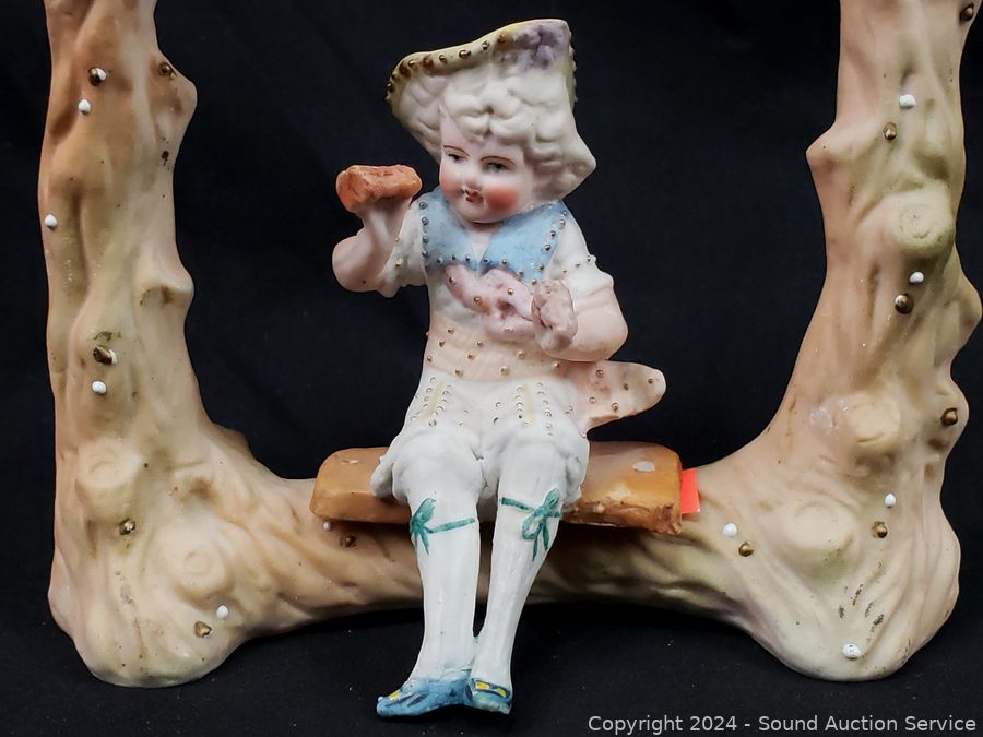 Approx. 4" to 7" tall. Some wear from age, use, don't see any major issues. Child on seat I don't see any makers mark, the rest are marked occupied Japan.