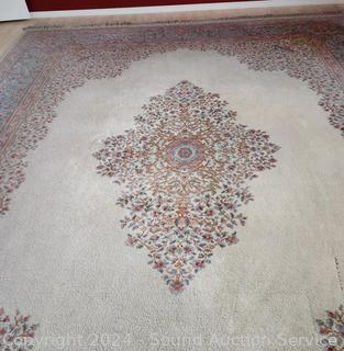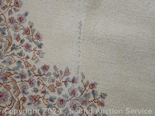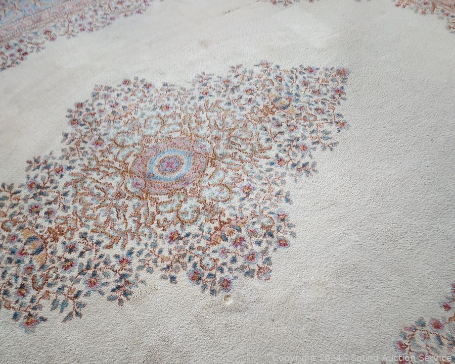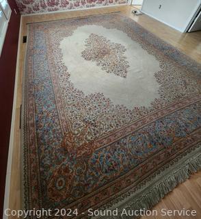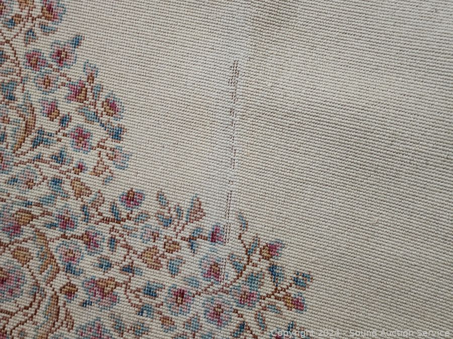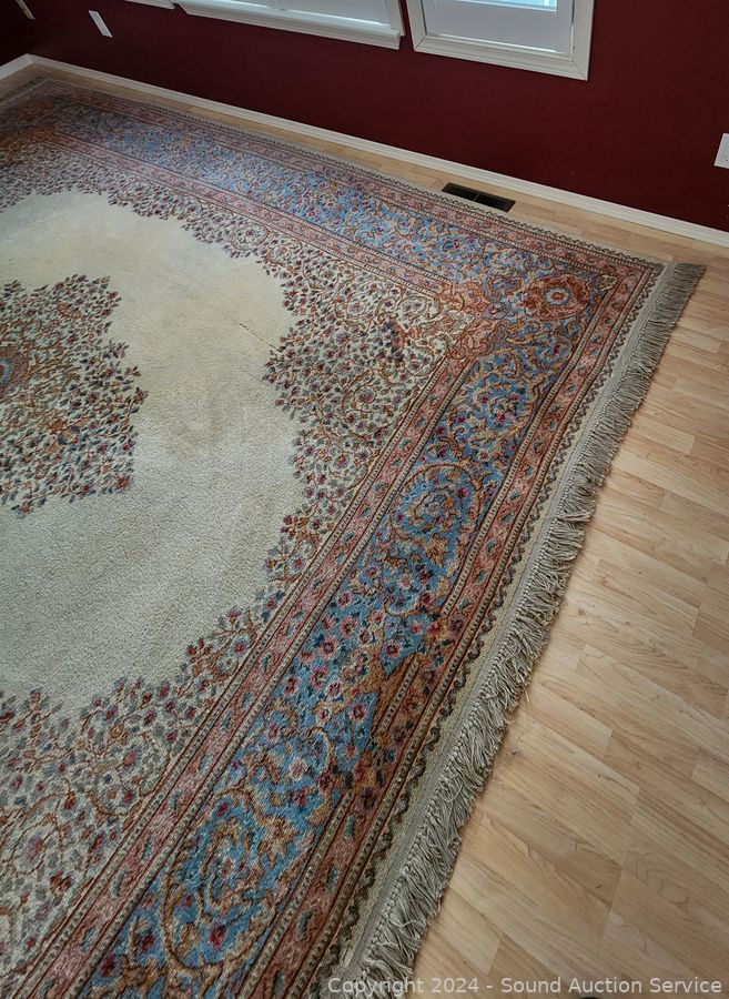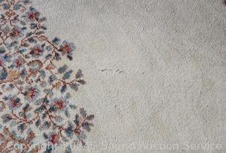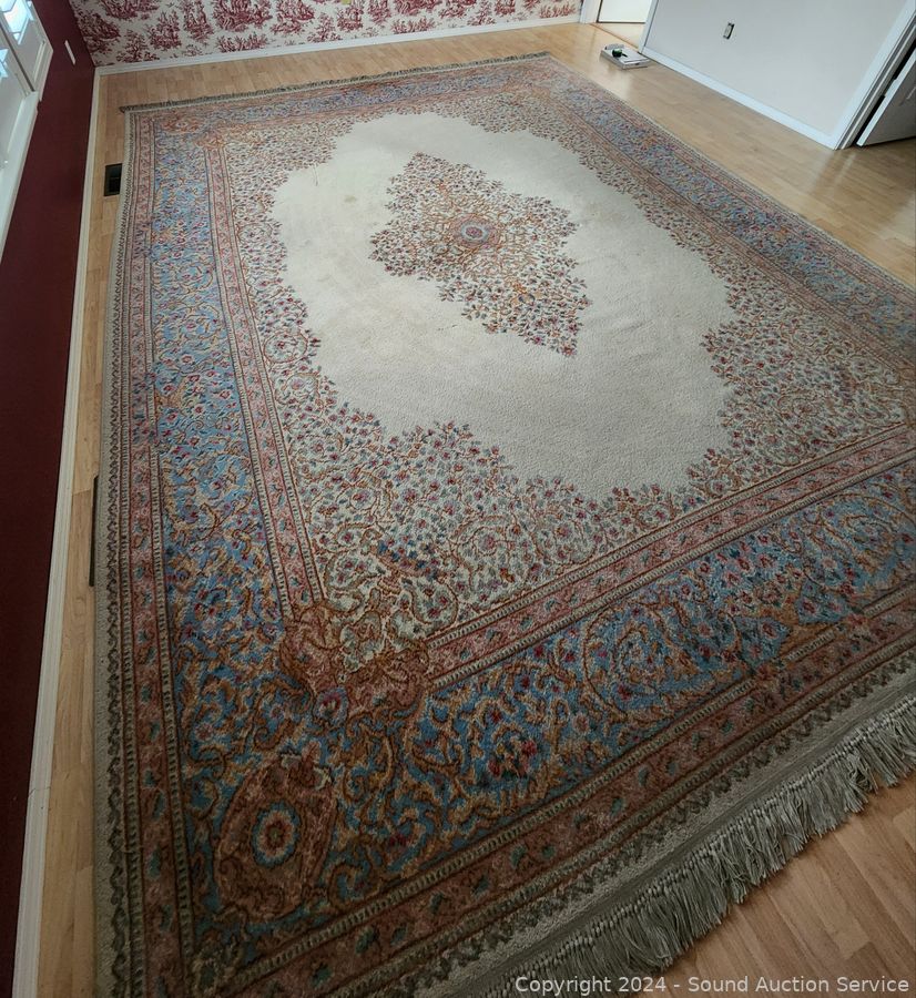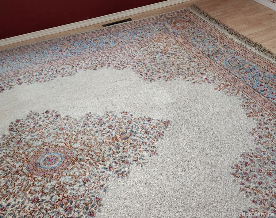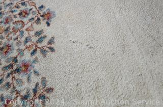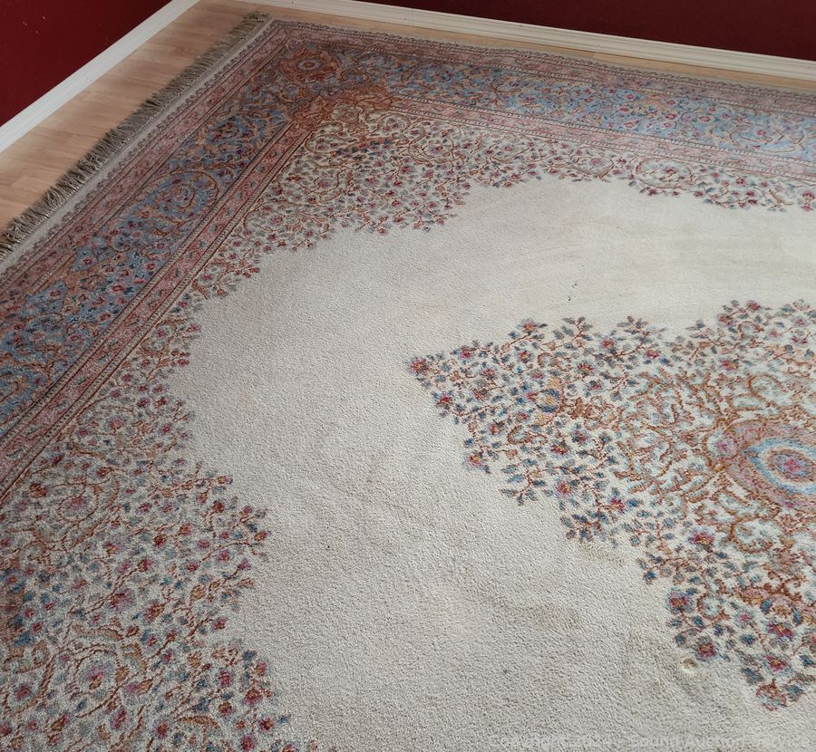 A couple snags, does have some discoloration in middle, could use a proper cleaning. 166" x 126".