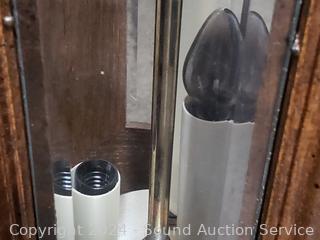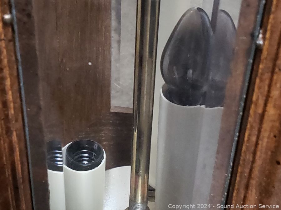 Approx. 19" to 59" H x 18" Dia. Bottom light has one working socket (unable to get it to turn on, flickers sometimes when moving may be the wiring), top light works, overall great condition.