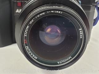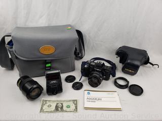 Lot #0336: Minolta Maxxum 7000 Film Camera w/Lenses, Flash, Bag