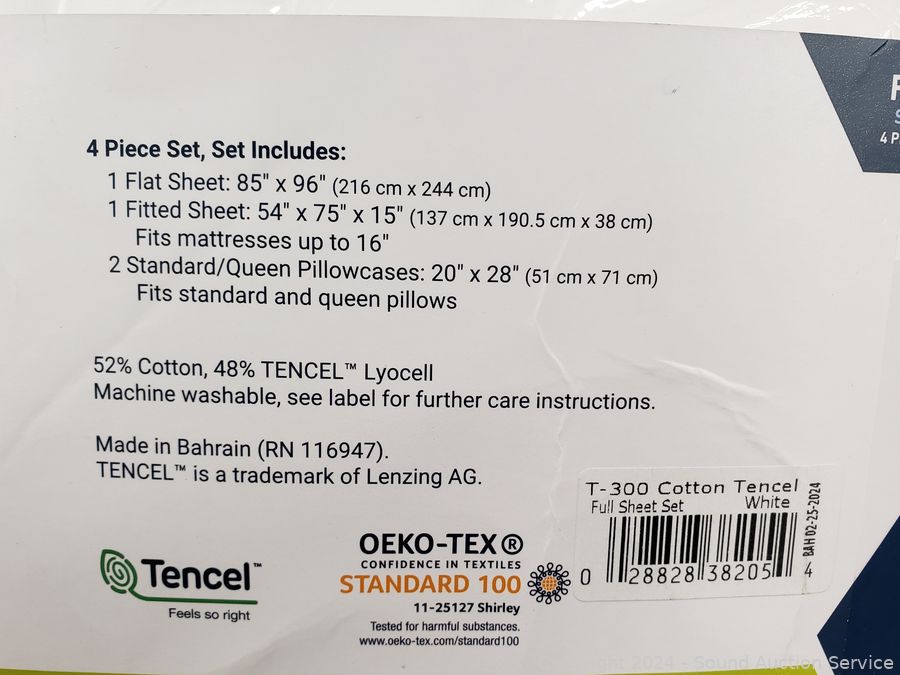 1 flat, 1 fitted, 2 pillowcases. Blended cotton, tencel.