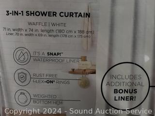 Lot #0303: Original Hookless Waffle White 3-in-1 Shower Curtain Set