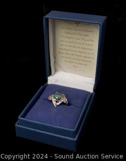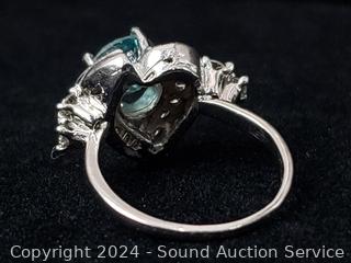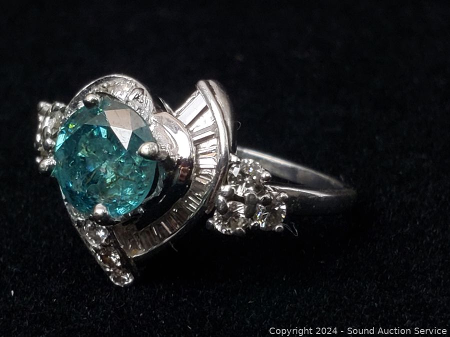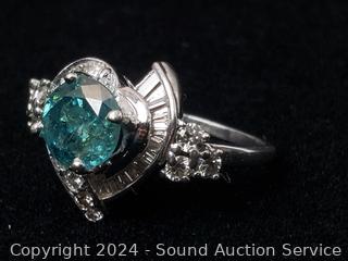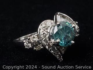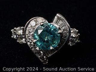 Lot #0002C: Platinum Heart Diamond Ring w/Round Brilliant Irradiated Blue Diamond S:6.25