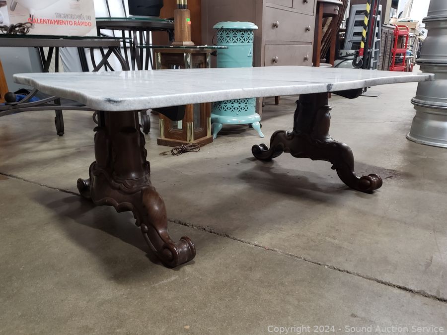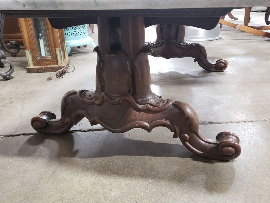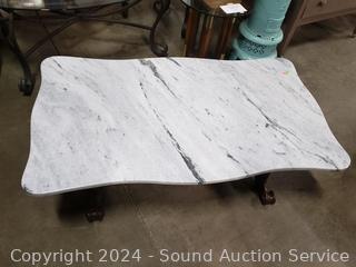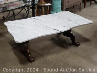 Lot #0032: Victorian Marble Top Heavy Carved Base Coffee/Cocktail Table