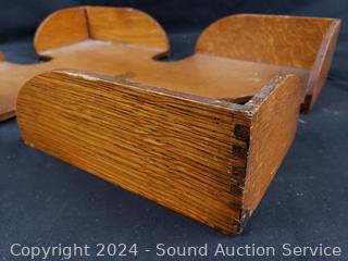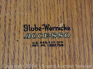 Approx. 12" H x 11" x 6" Globe Wernicke organizer box, wood inlaid hand mirror 12" x 8.25", drop box 2.75" x 10.75" x 15.75". Refer to photos for more details.