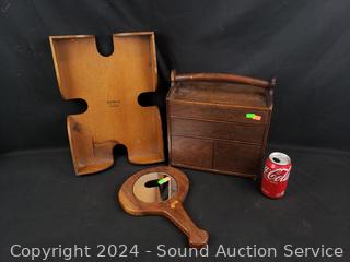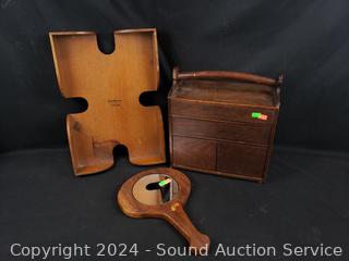 Lot #0150: Vintage 4-Drawer Organizer Box, Hand Mirror & Desktop Dropbox