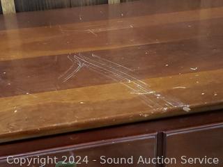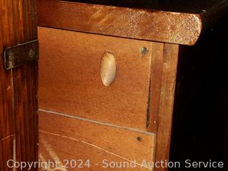 All wood construction, dovetail joinery. 37" H x 52" W x 20.5" D. Some scuffs, wear to finish.