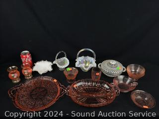 Lot #0082: 10pc Pink Glass & 4pc Milk Glassware