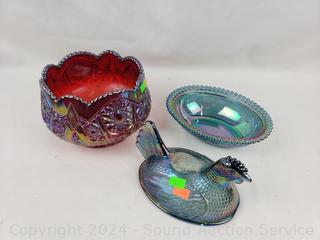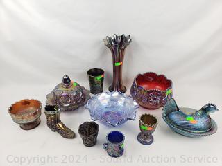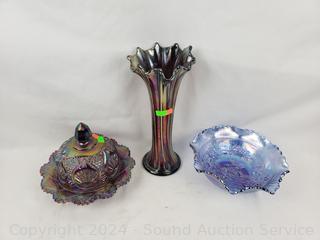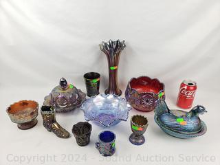 Lot #0073: 11pc Vintage Iridescent Carnival Glassware