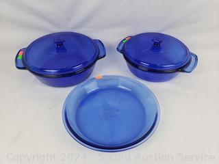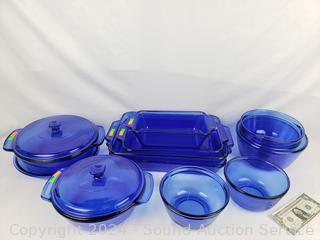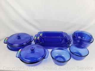 Lot #0171: 12pc Pyrex Cobalt Blue Cookware w/2 Lids