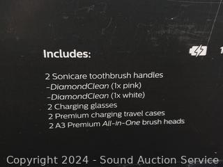 Both appear to be functioning as intended, complete with 2 handles, 2 charging glasses, 2 charging travel cases, 2 brush heads. Don't see any issues.