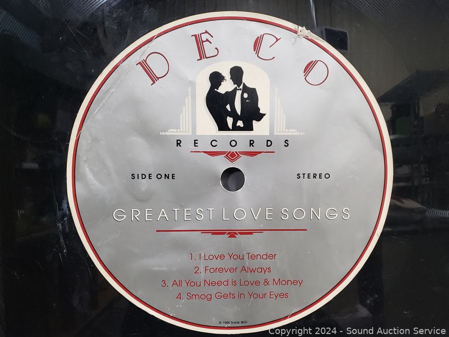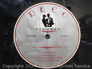 "The best of Rock 'n Roll", "The Greatest Love Songs" & "Big Birthday Greetings". Some scuffs, wear to finish. 34" Dia.
