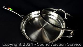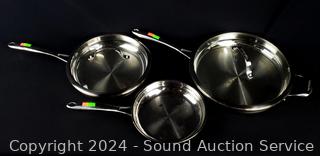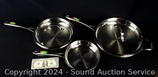 Lot #0295: 3 Cuisinart Stainless Skillets w/2 Lids