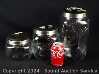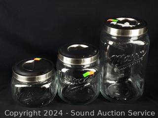 Lot #0289: 3pc Mason Clear Glass Container Set