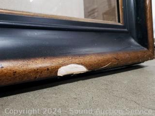 Unsure if original or replica. Approx. 21" L x 29" W. 43.5" x 43.5" x 5.5" frame. Some scuffs, wear to finish on frame.