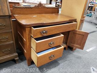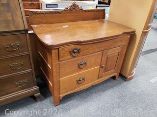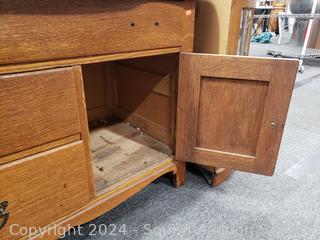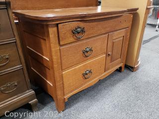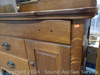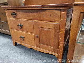 Lot #0034: Antique Quarter Sawn Oak Wash Station Cabinet