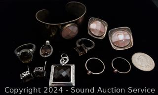 Lot #0118: Assorted Sterling Pink & Brown Stone Jewelry
