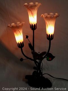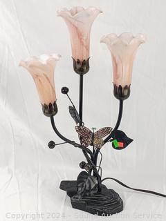 Lot #0042: Bronze Finish Art Nouveau Butterfly 3-Light Table Lamp