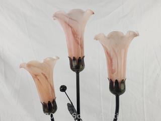 Glass shades. Approx. 21" tall. Appears to be functioning as intended.