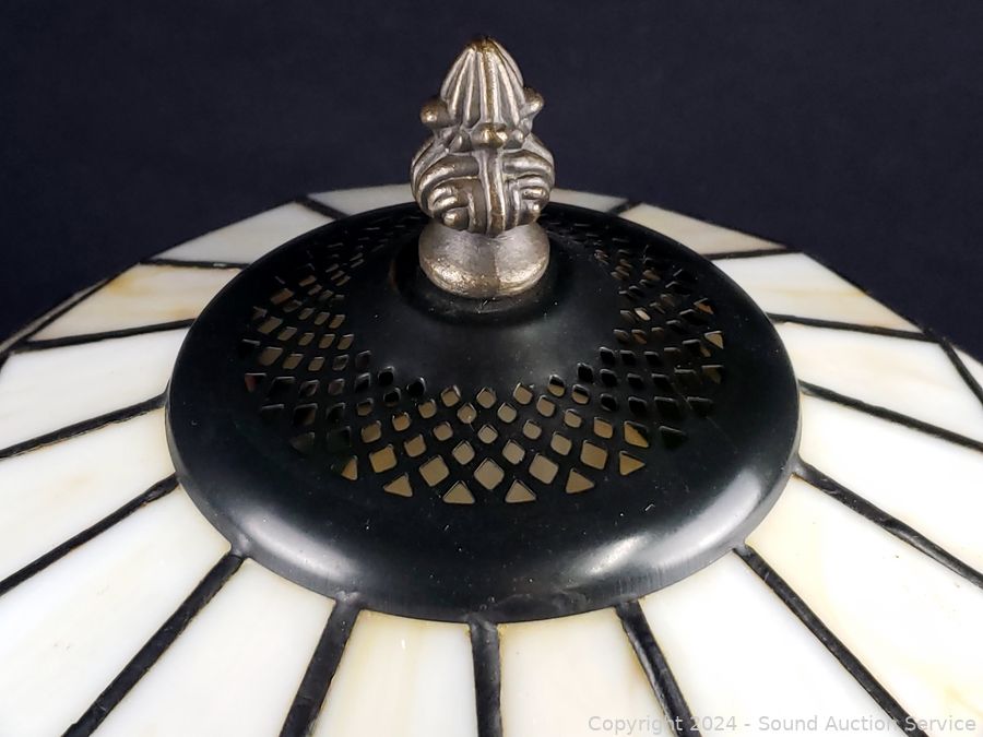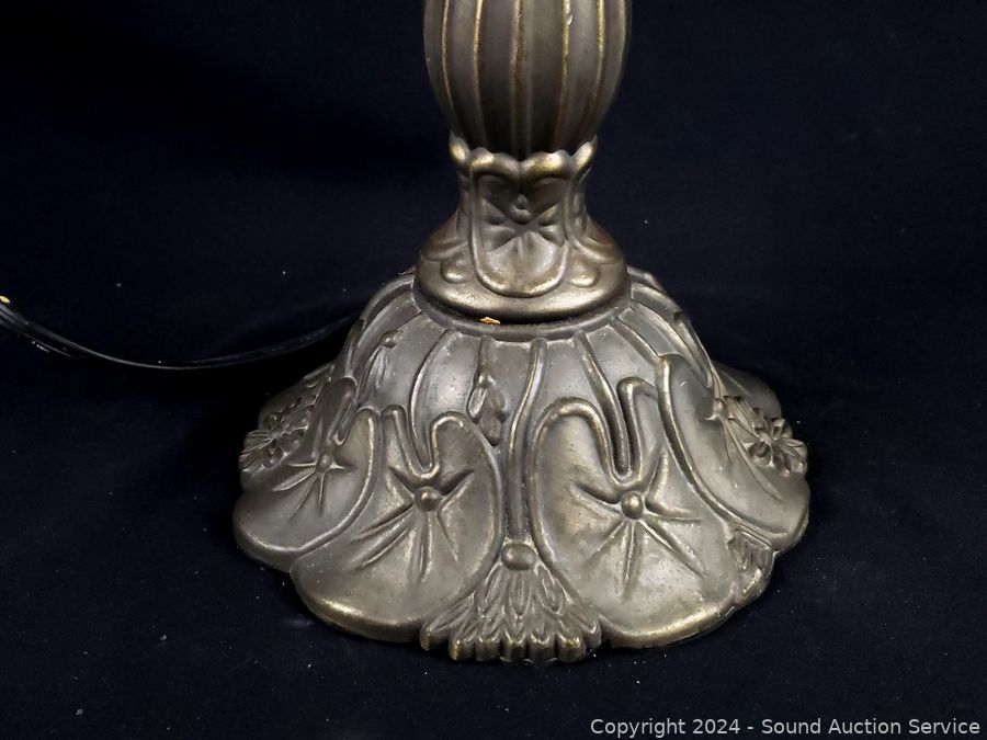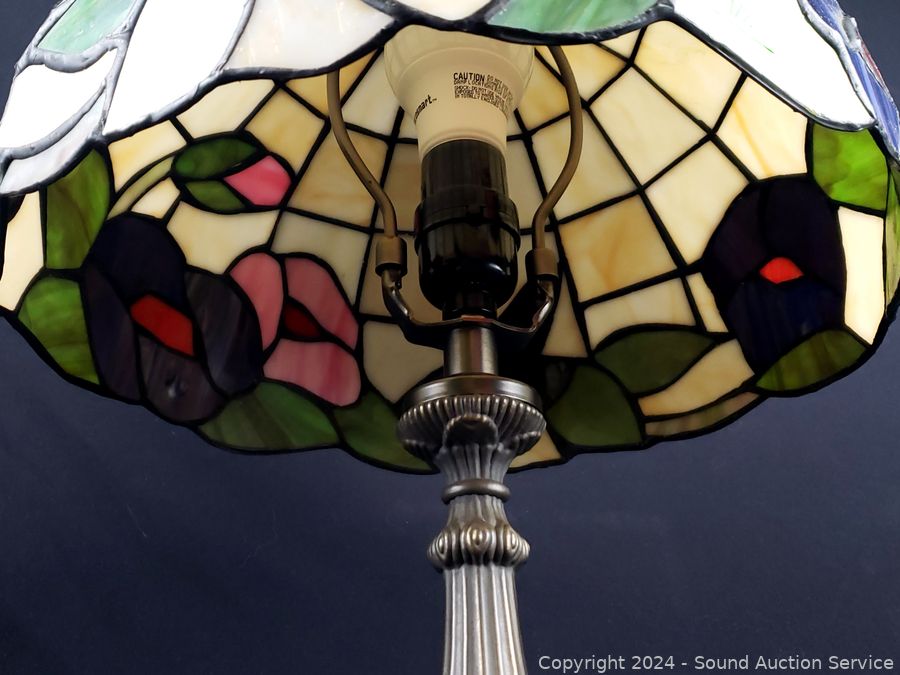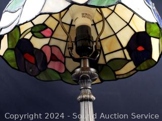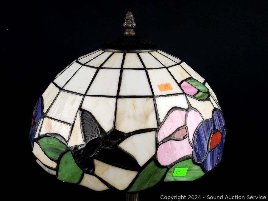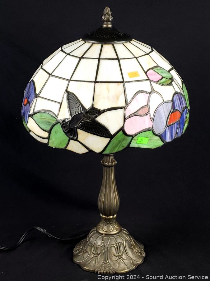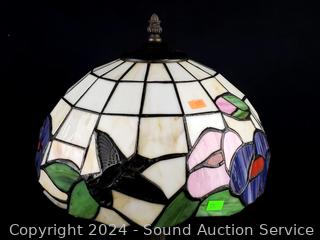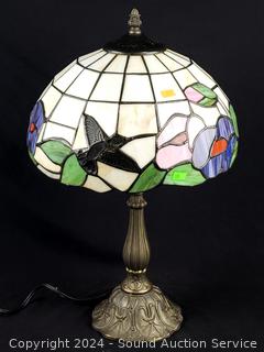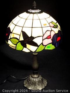 Lot #0179: Bronze Hummingbird Stained Glass Shade Table Lamp