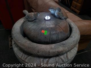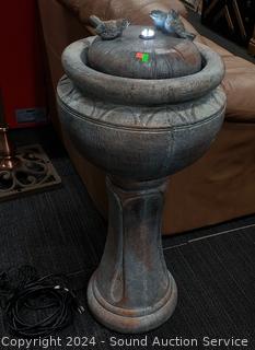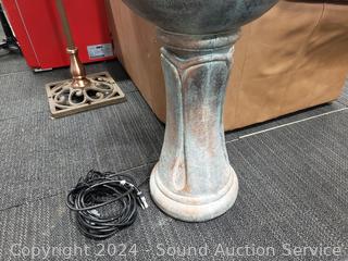 Pump has power, did not test with water. Light works. Approx. 36" H x 16" Dia.