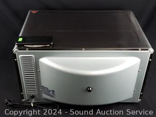 Approx. 12-5/8" H x 21.25" W x 14" D. Some light wear from use. Appears to be functioning as intended, with racks, manual.