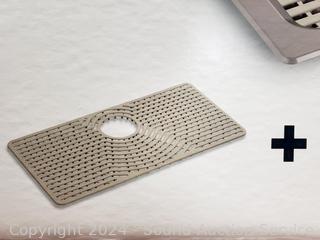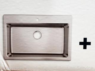 18GA Single Bowl Sink 33" L x 22" W x 9" D, silicone sink mat, drying rack, knife holder, & drain. Like new, don't see any issues.
