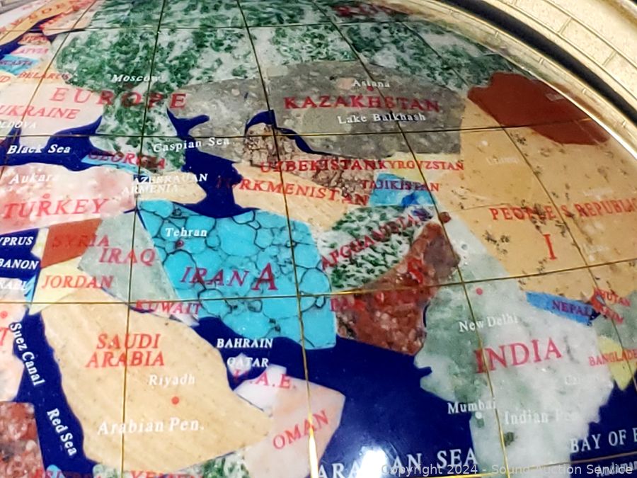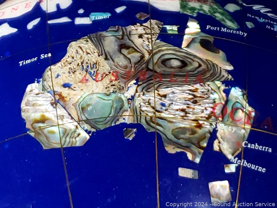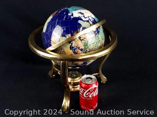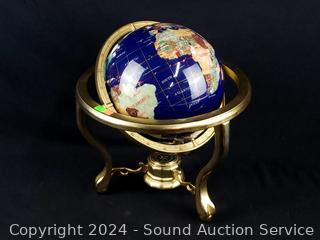 Lot #0129: Lapis, Semiprecious Stone Globe w/Brass Stand