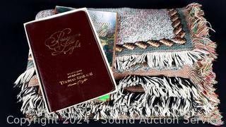 Lot #0145: Leather Bound Thomas Kinkade Scriptures & Throw Blanket