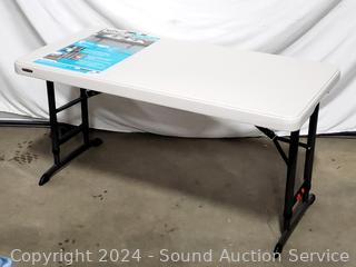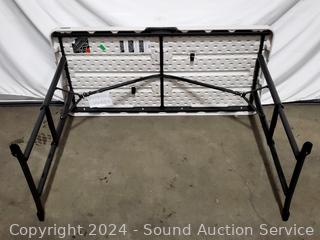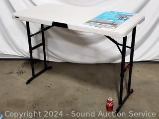 Adjustable height 23" to 35" H x 24" x 48". Don't see any issues.