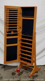 Lot #0006: Lori Greiner Oak Wardrobe Mirror Jewelry Chest