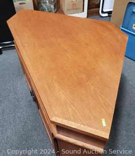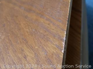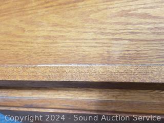 Appears to be al wood, veneer construction. Approx. 26.5" H x 53.5" W x 30" D. Some scuffs, wear to finish.