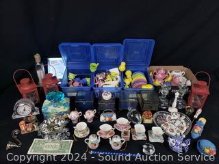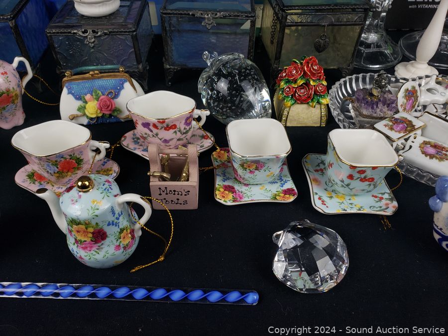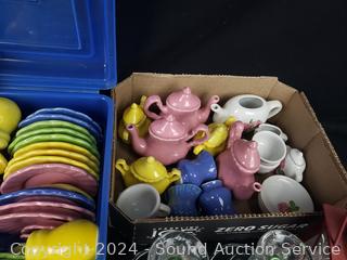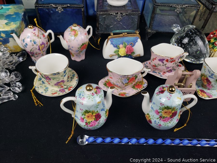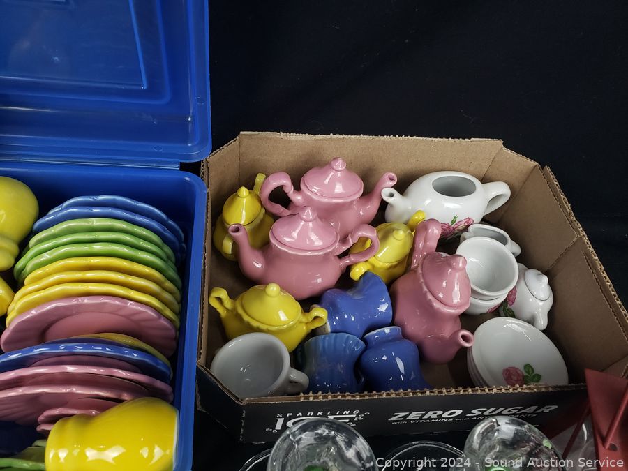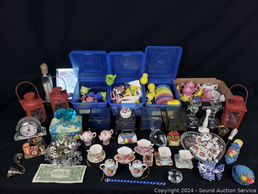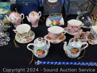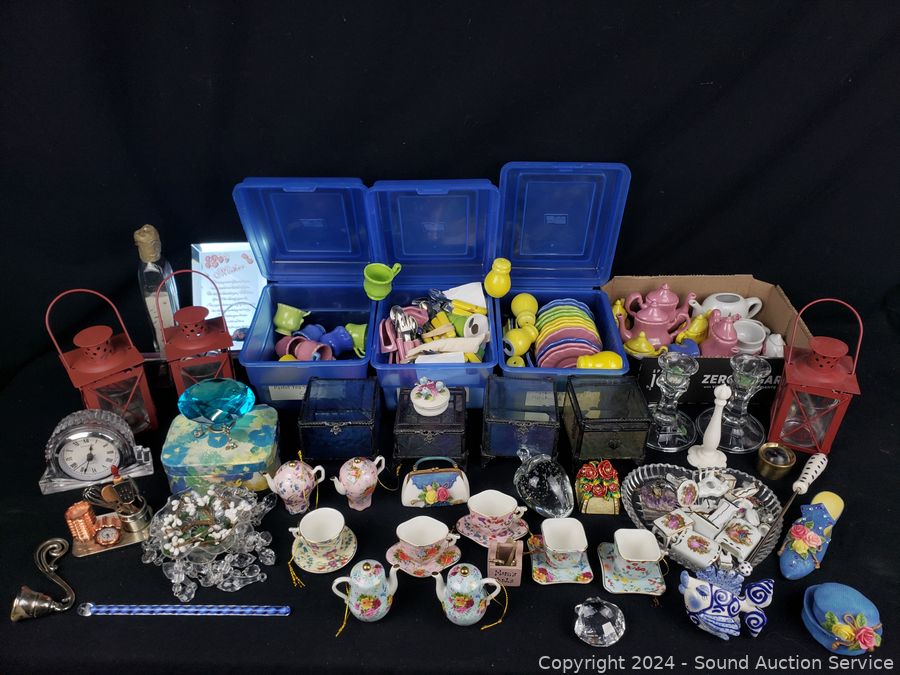 Lot #0174: Pastel Miniature Tea Sets, Miniature Doll Furniture, Knick Knacks Decor