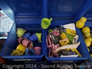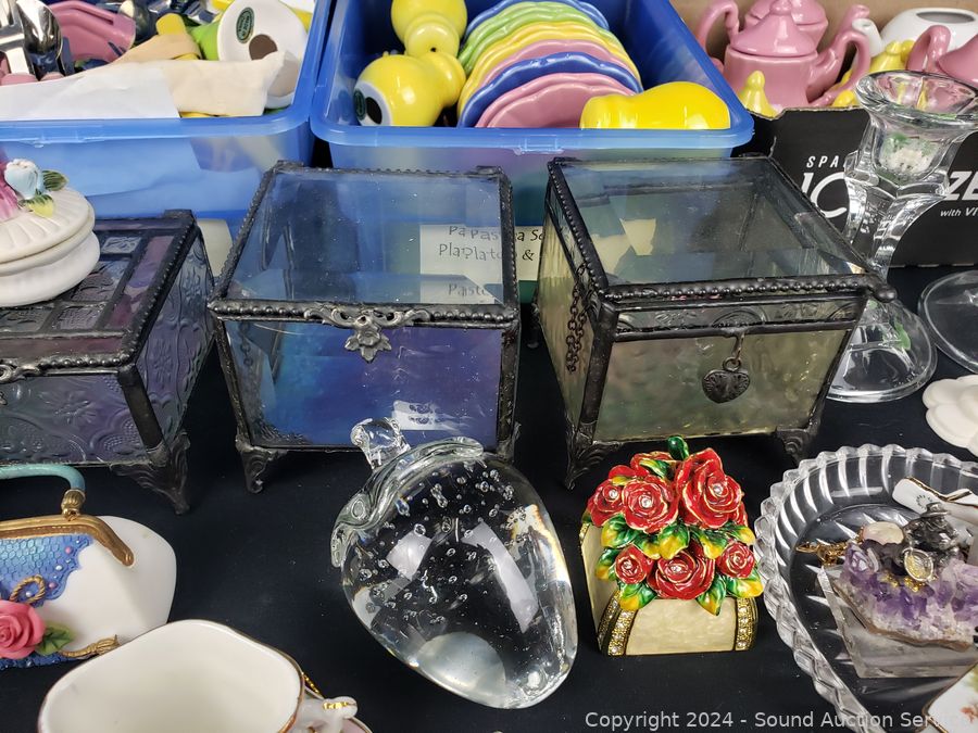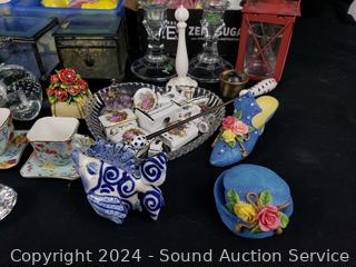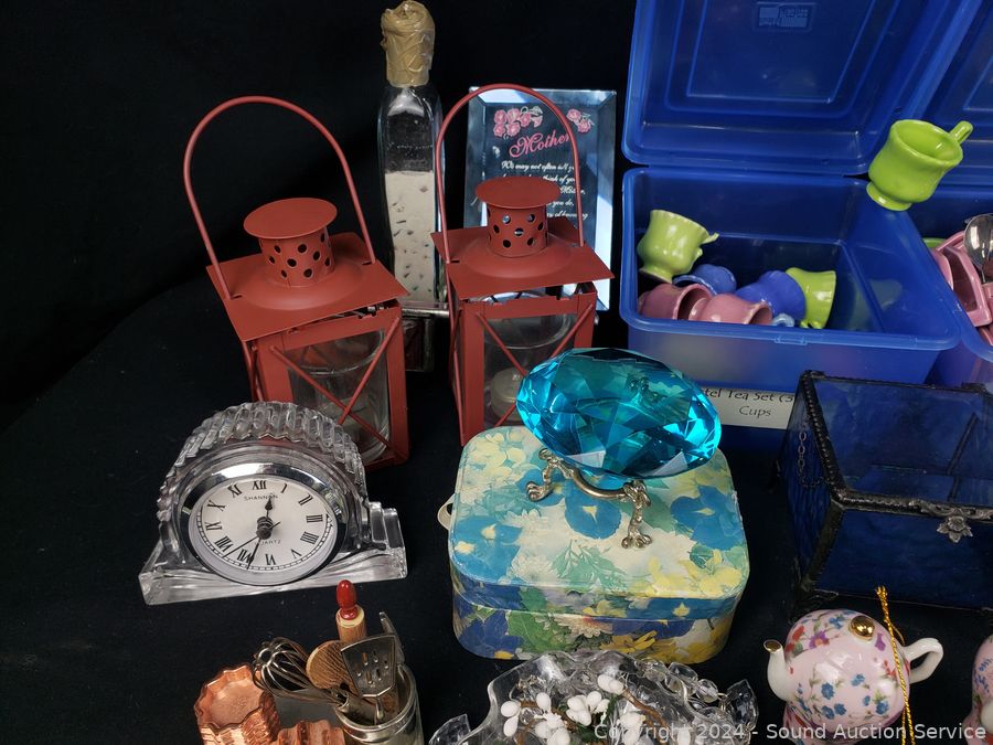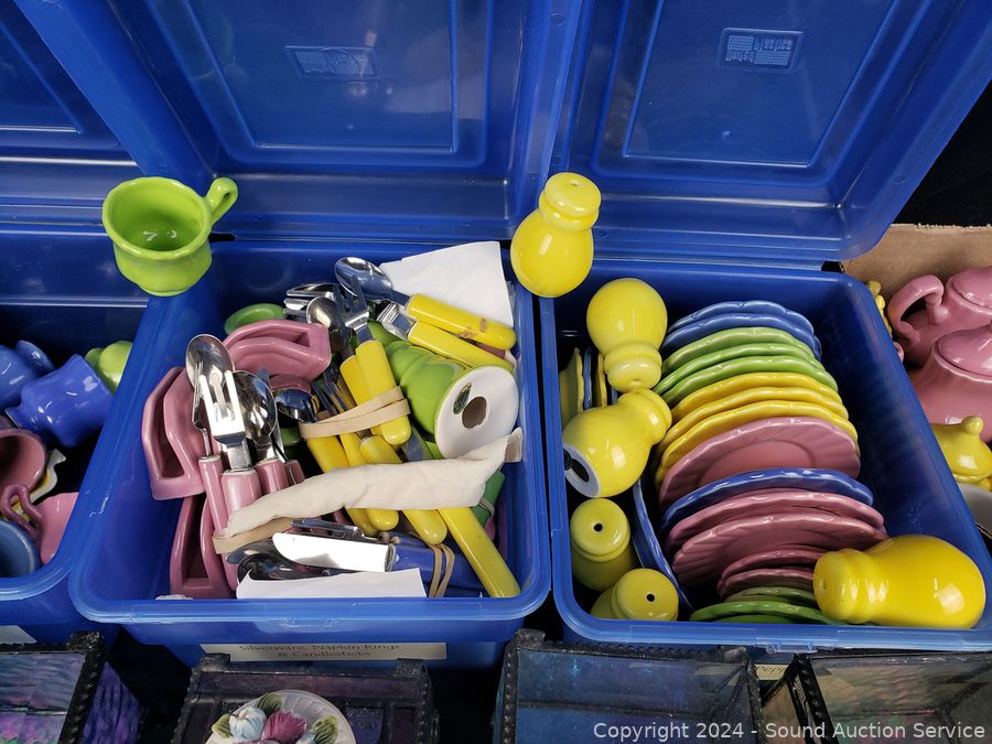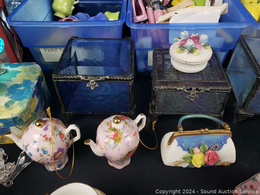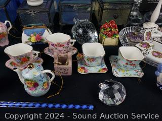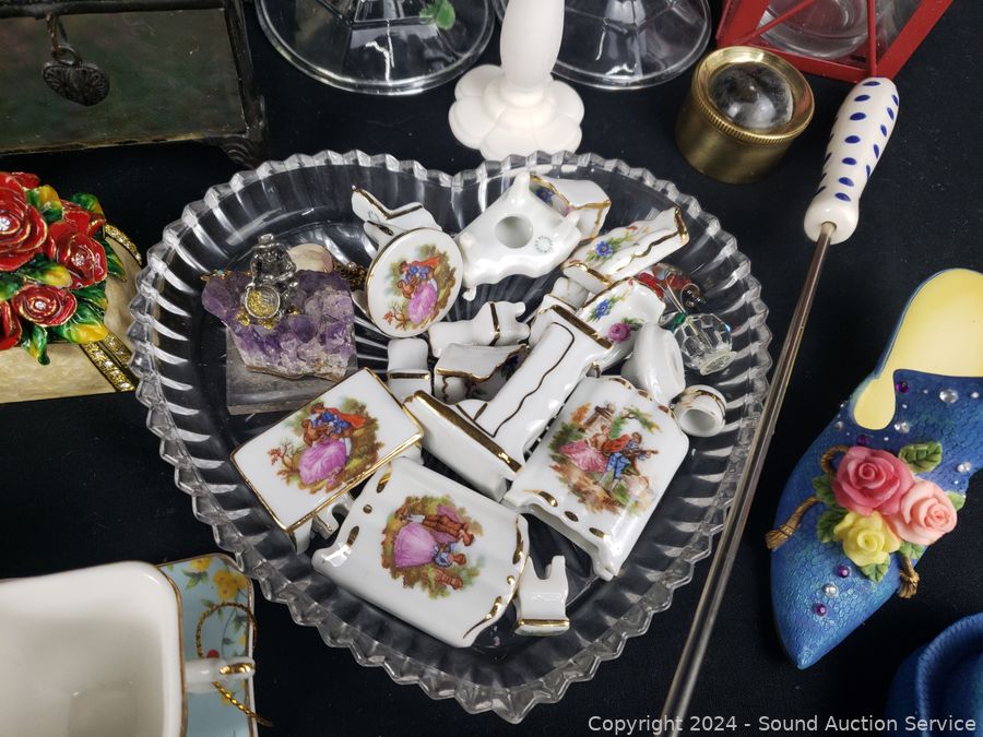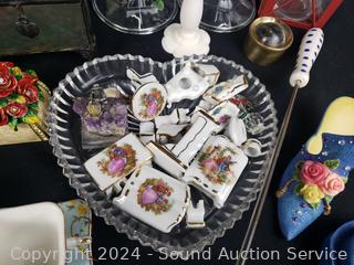 Lot #0174: Pastel Miniature Tea Sets, Miniature Doll Furniture, Knick Knacks Decor