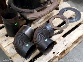 Approx. 39" H x 22" W x 17". Various rust, wear to finish. Comes with 2 elbows, (2) 12", (1) 18" & (1) 42" lengths of 6" pipes. Refer to photos for more details.