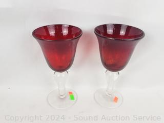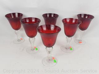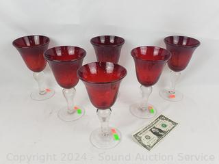 Lot #0150: Set of 6 Ruby/Clear Stemware Goblets