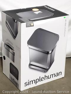 Lot #0215: Simple Human Stainless Steel Step 14.5 Gallon Trash Bin