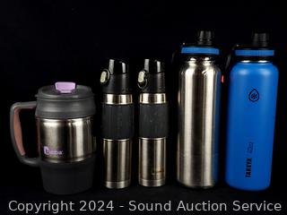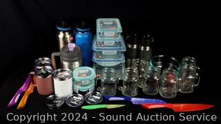 Lot #0252: Snapware Containers, Travel Bottles, Jar Mugs, Cutlery Set