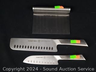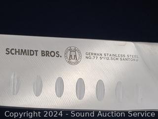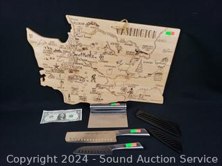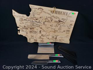 Lot #0196: Washington Bamboo Cutting Board w/3pc Schmidt Bros. Cutlery Set