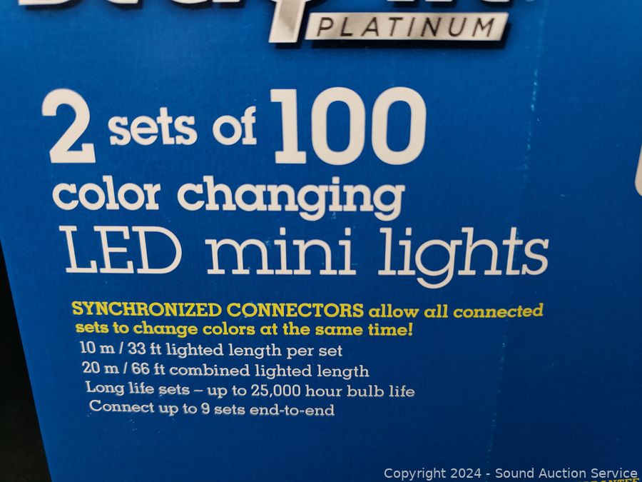 Lot #0127: (2) 2pk Sylvania Stay-Lit 100 LED Color Changing String Lights