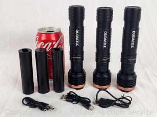 Lot #0171: 3 Duracell LED 1200LM Rechargeable Flashlights