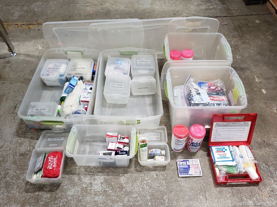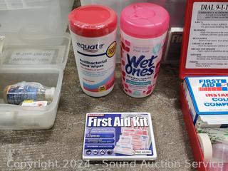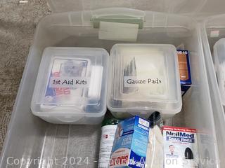 Lot #0242: 4 Totes of Assorted First Aid Supplies, Wipes