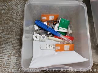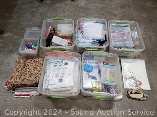 Lot #0260: 5 Small Totes of Sewing, Cake Decorating, Crafts Supplies