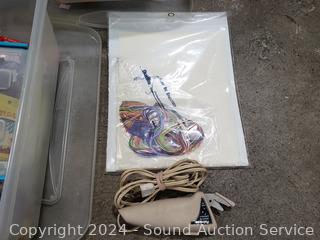 Gift bags, cross stitch, cake decorating, muffin paper, sewing machine supplies. Refer to photos for more details. 6" x 12.75" x 16".