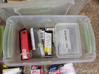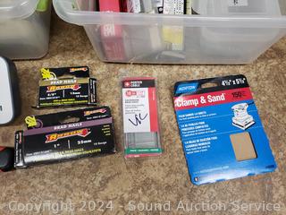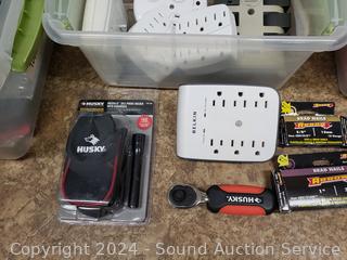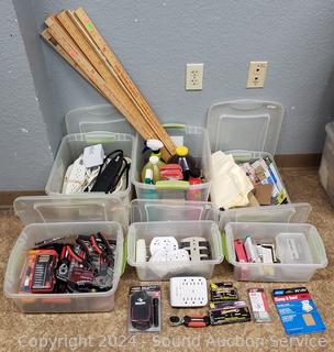 Outlet adapters, brad nails/staples, hand tools, sockets, bits, drivers, power strips, yard sticks, cleaning products, etc. Refer to photos for more details.