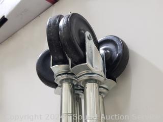 Approx. 77" w/Casters, 18" x 48". Unassembled, complete.