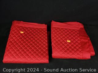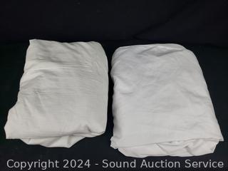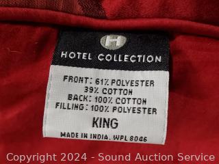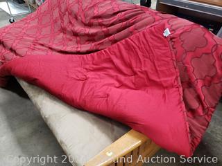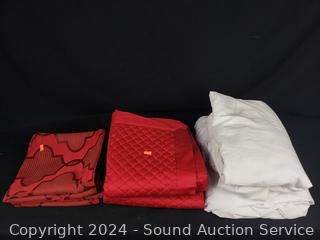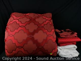 Comforter, mattress cover, bed skirt, 4 pillowcases. Some minor loose threads, don't see any other issues.