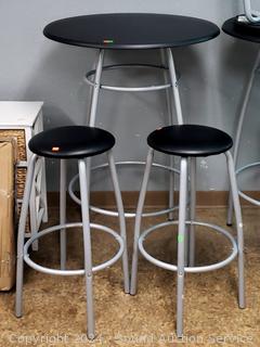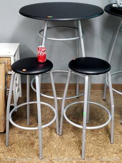 Lot #0026: Black Finish Grey Steel Cafe Table w/2 Stools